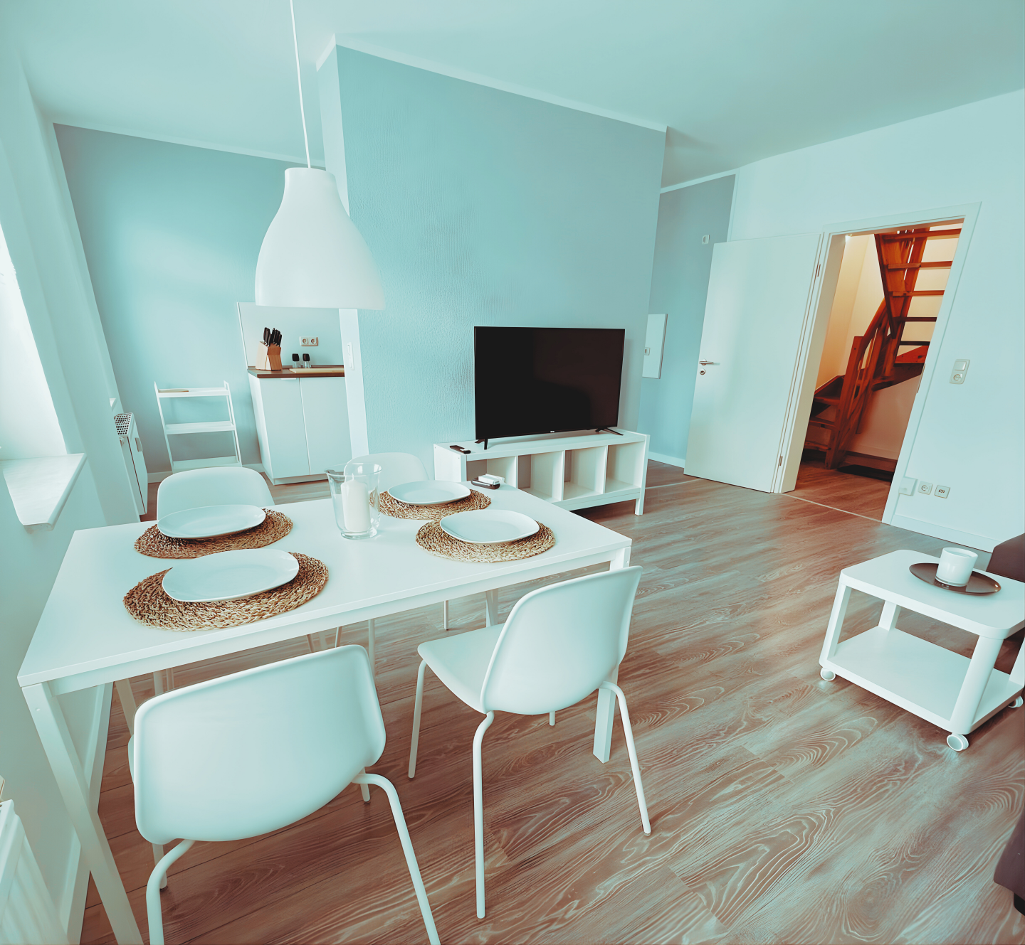 Moderne, liebevoll eingerichtete Maisonettewohnung mit Schlafboden (Doppelbett) und Schlafcouch für bis zu 4 Gäste. Die Wohnung liegt zentrumsnah in Chemnitz, Straßenbahn und Bus sind in wenigen Metern erreichbar. Parkplätze befinden sich direkt vor der Tür. Ausgestattet mit moderner Küche, Kaffeeautomat, Waschmaschine, großem TV, kostenlosen WiFi und vielem mehr – ideal für einen komfortablen Aufenthalt. Unterhaltung via Waipu TV Perfect Plus.